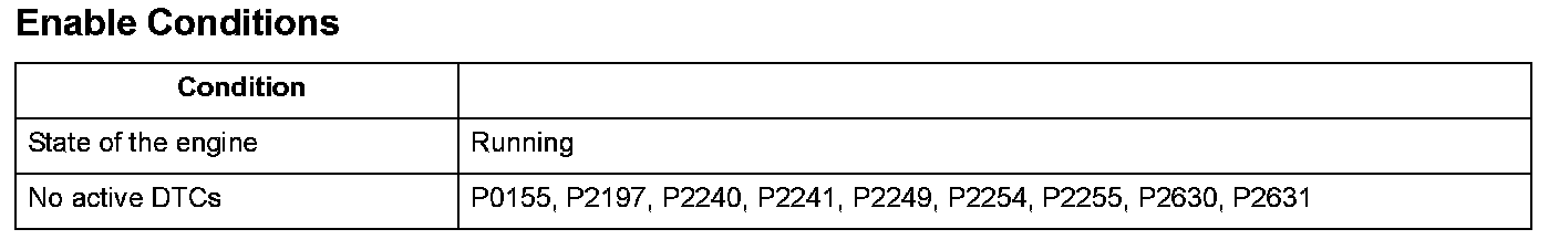 When the VSB2 (sensor cell voltage supply, bank 2) terminal voltage repeatedly fluctuates between the value above the specification and the value below the specification for more than a fixed frequency, the ECM/PCM detects a malfunction and a DTC is stored.