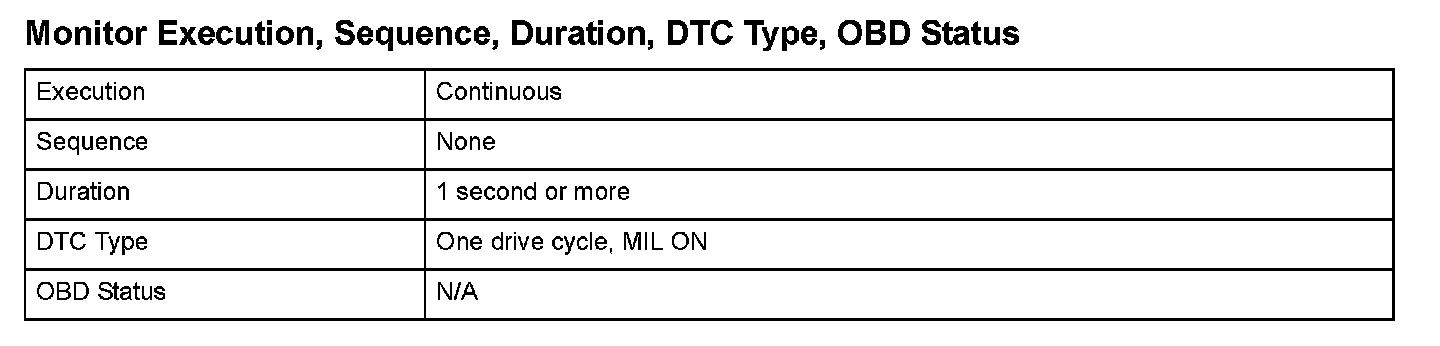 Monitor Execution, Sequence, Duration, DTC Type, OBD Status