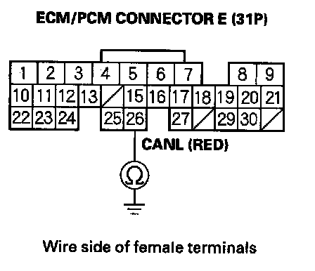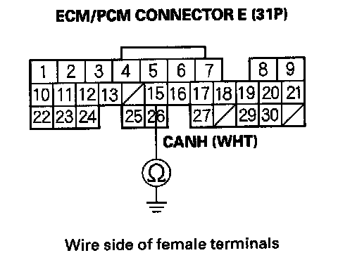 13. Check for continuity between ECM/PCM connector terminal E26 and body ground.