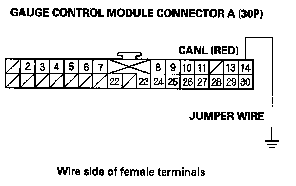12. Connect gauge control module connector terminal A14 to body ground with a jumper wire.