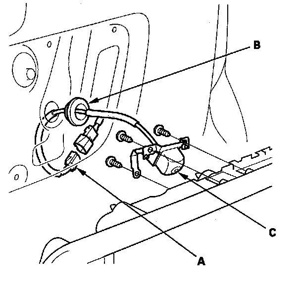 2. Inside the trunk lid, disconnect the connector (A), then remove the grommet (B) from the trunk lid and push the connector through the hole in the trunk lid.