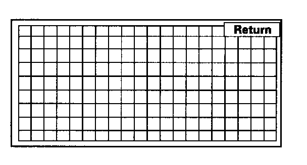 Touch Panel CheckThe panel touch sensing system consists of a touch sensitive resistive membrane covering the display. Contrary to other systems using infrared beams, the screen has to be physically touched to make it work. The display has the capability of an almost infinite number of touch locations. However, to be compatible with earlier systems, the software only senses the locations shown on the diagnostic screen below. Every possible touch button position is shown on this diagnostic screen. Touching one of these areas should cause its color to reverse, and sound a "beep". If the touch locations are off slightly (by less than one touch location), use the "Touch Panel Calibration" diagnostic to re-align the touch "zones" with the screen image. If any areas of the screen either don't respond, or respond at some other location when touched, then replace the display unit.