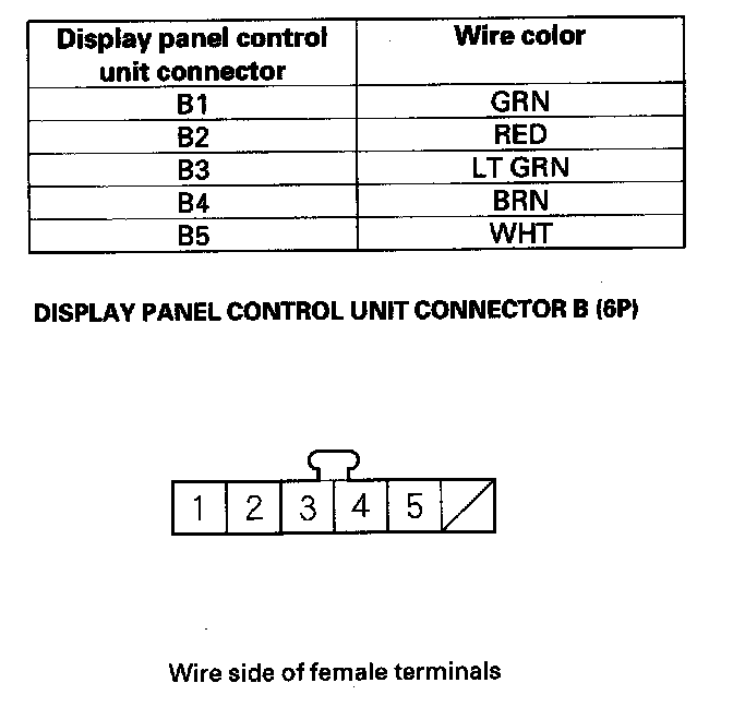 8. Check for continuity between the display panel control unit connector B (5P) and body ground according to the table.