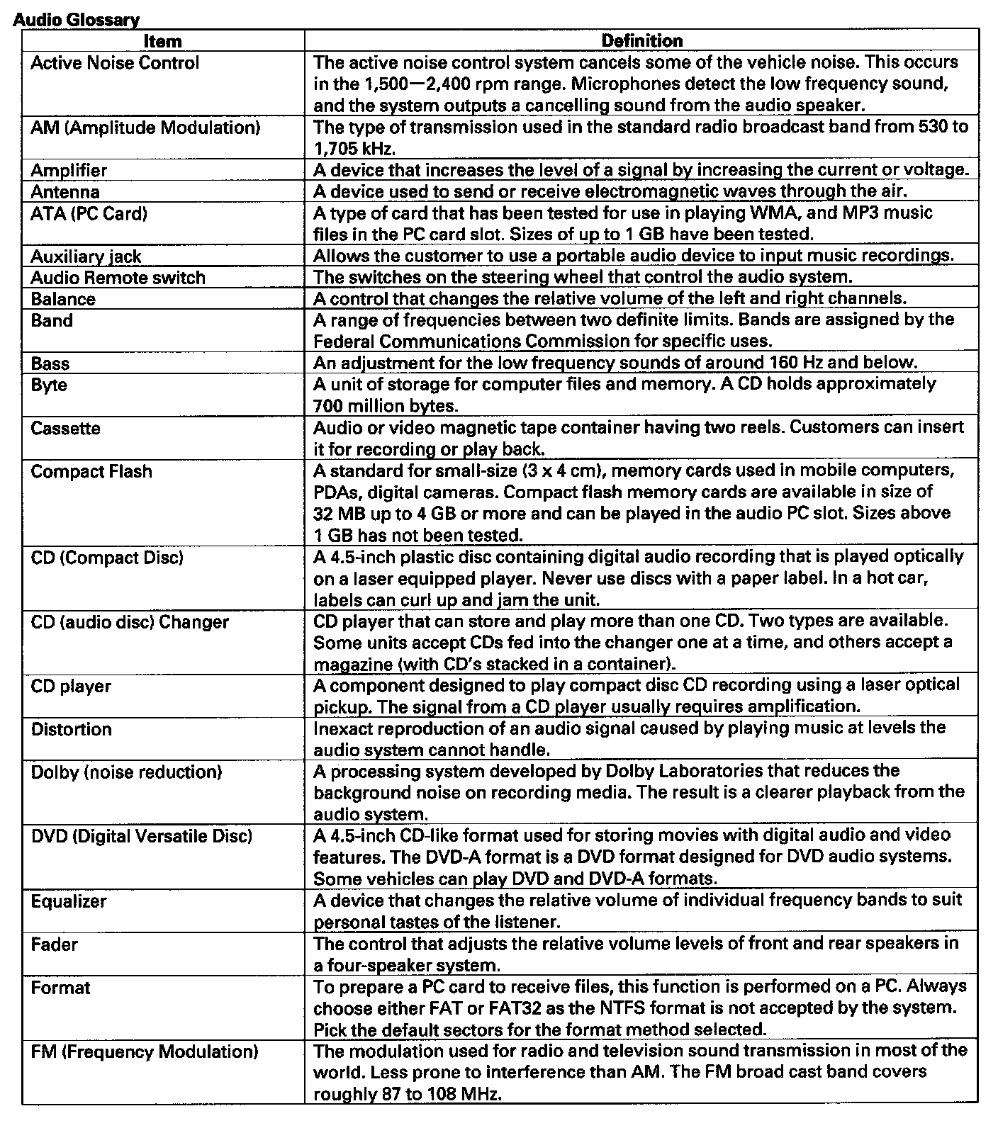 The audio unit has a built-in EEPROM (electrically erasable programmable read-only memory). This memory holds the audio presets (AM/FM radio frequency, sound settings, etc.) even when the battery is disconnected.