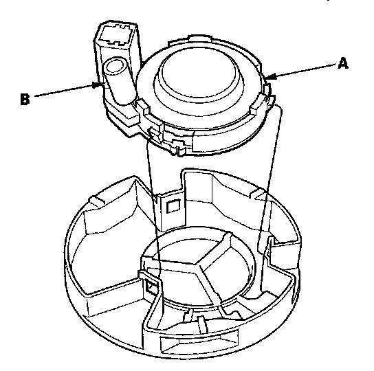 NOTE: Align the speaker on the locating tabs (A) of the mounting grommet.