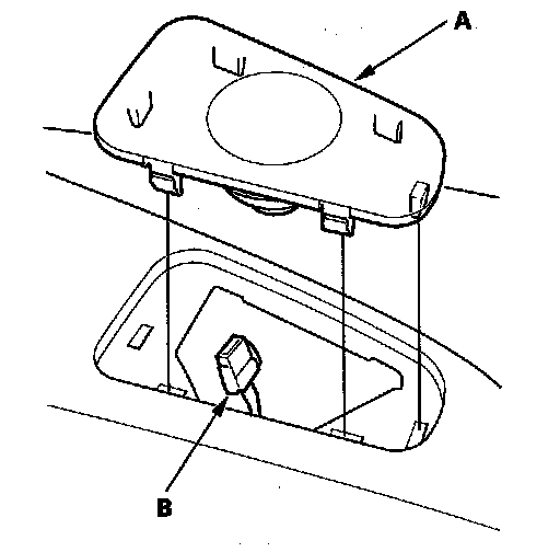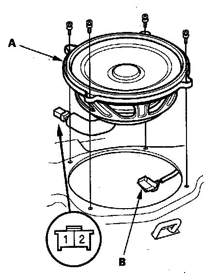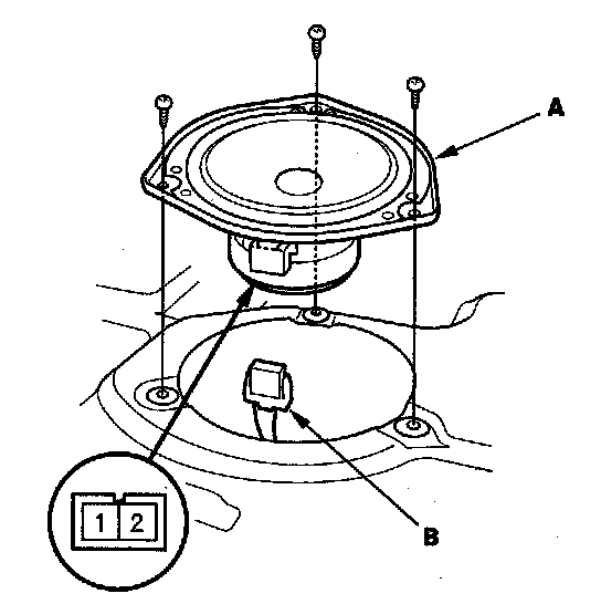 3. Disconnect the 2P connector (B), and remove the rear speaker.