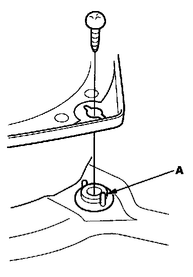 1. Carefully pry the front center speaker grille (A) out from the dashboard. Be careful not to damage the speaker grille and the dashboard.