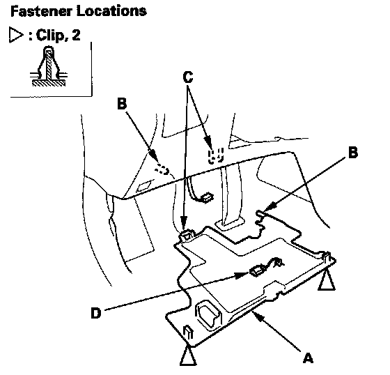1. Remove the driver's dashboard undercover (A).