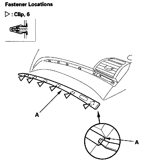 1. Pry up on the outside edge of the passenger's dashboard trim (A) very carefully to detach the clips, then remove the trim.