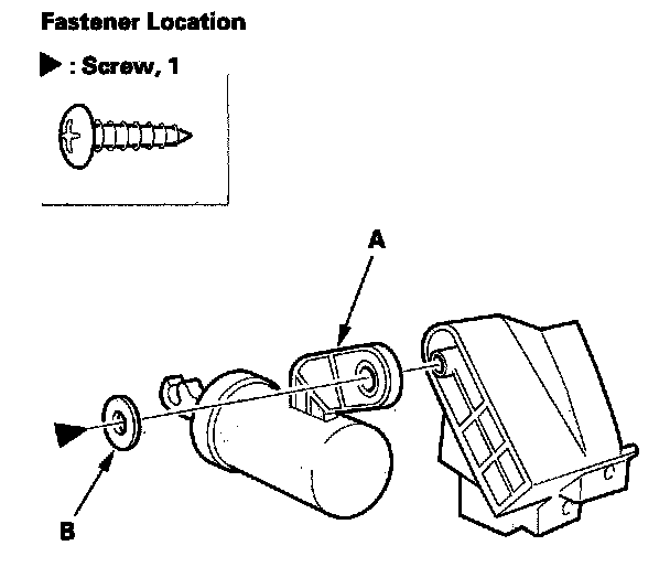 3. Remove the screw, then remove the glove box damper (A) and washer (B).