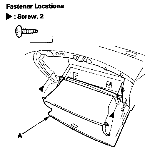 2. While holding the glove box (A), remove the screws, then remove the glove box.