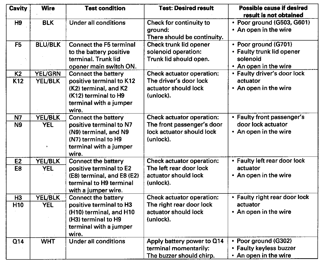 NOTE: Before testing the keyless entry/security control system, troubleshoot the multiplex integrated control system.