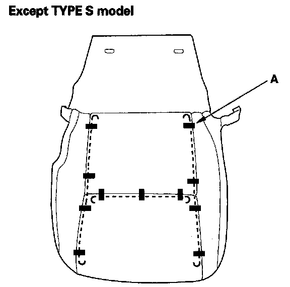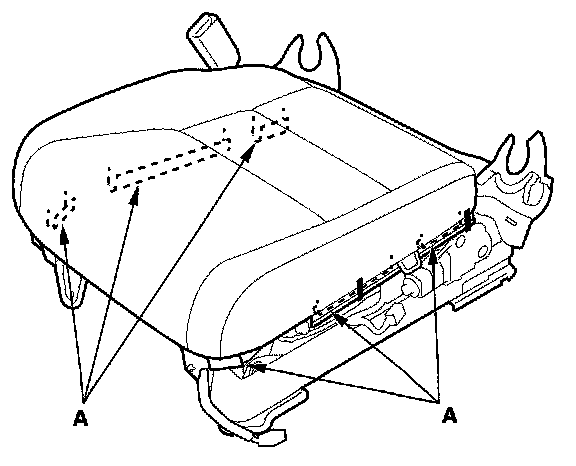 6. Pull back the edge of the seat cushion cover all the way around, and release the clips (A), then remove the seat cushion cover.