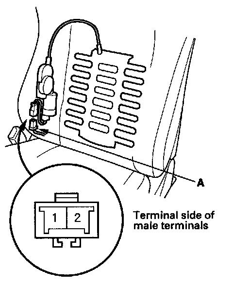 2. Disconnect the 2P connector (A) from the lumbar support motor.