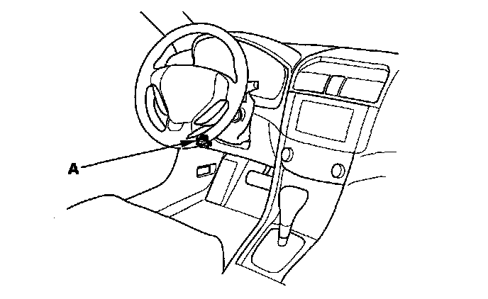 2. With the ignition switch OFF, connect the HDS to the data link connector (DLC) (A) under the driver's side of the dashboard.