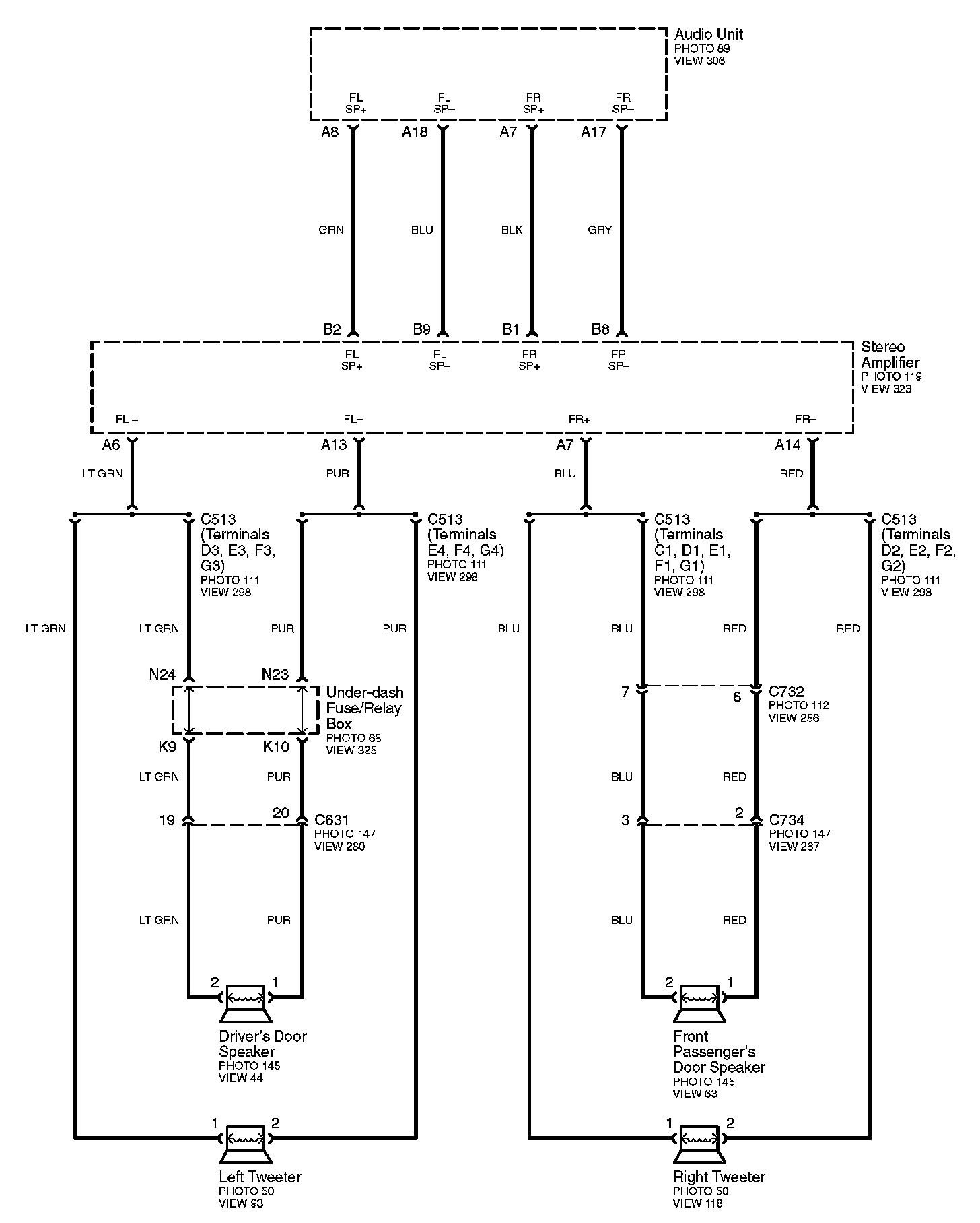 Connector Views: Connector terminal views (references to VIEWS) referred to within these diagrams can be found at Connector Views by View Number. Connector Views By View Number