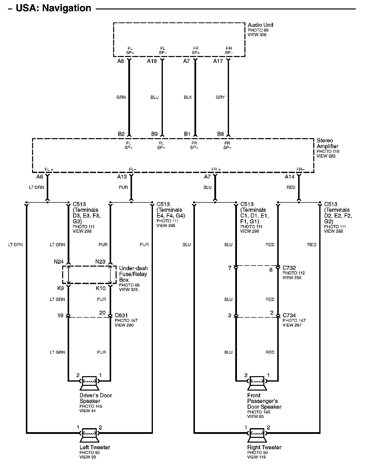Connector Views: Connector terminal views (references to VIEWS) referred to within these diagrams can be found at Connector Views by View Number. Connector Views By View Number
