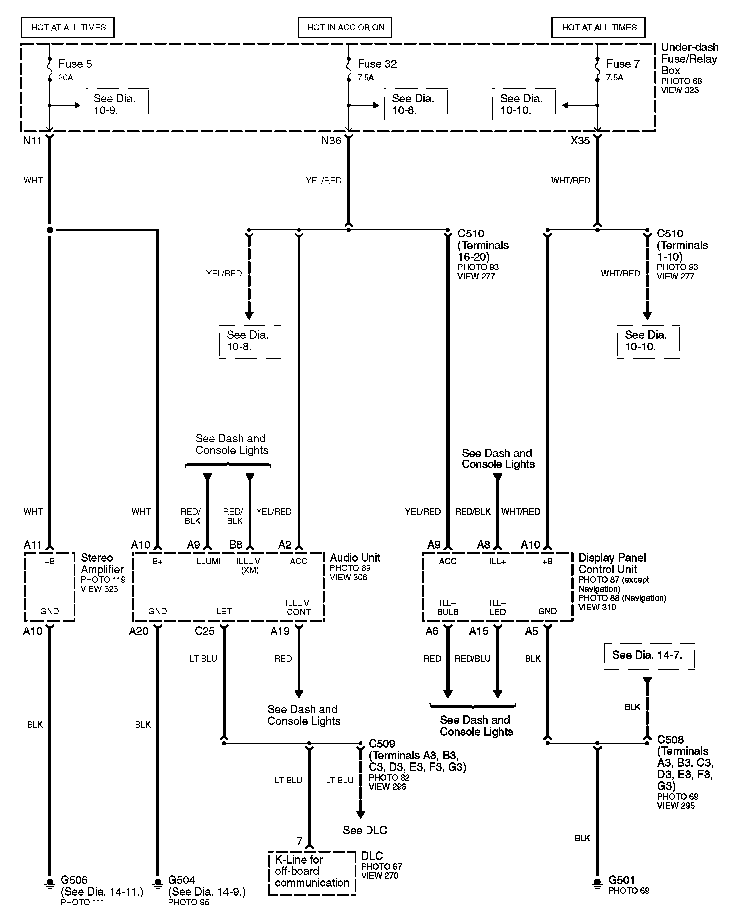 Connector Views: Connector terminal views (references to VIEWS) referred to within these diagrams can be found at Connector Views by View Number. Connector Views By View Number