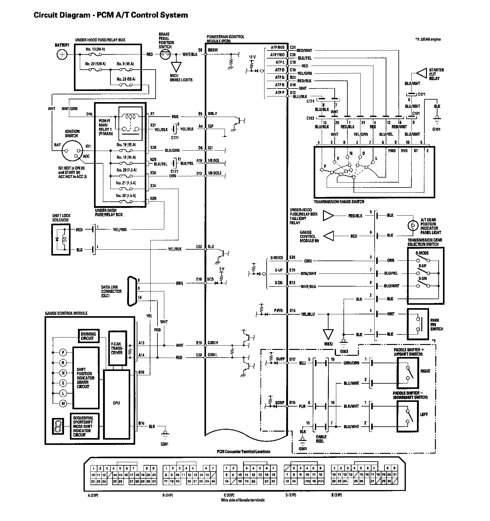 Circuit Diagram - PCM A/T Control System (Part 1):