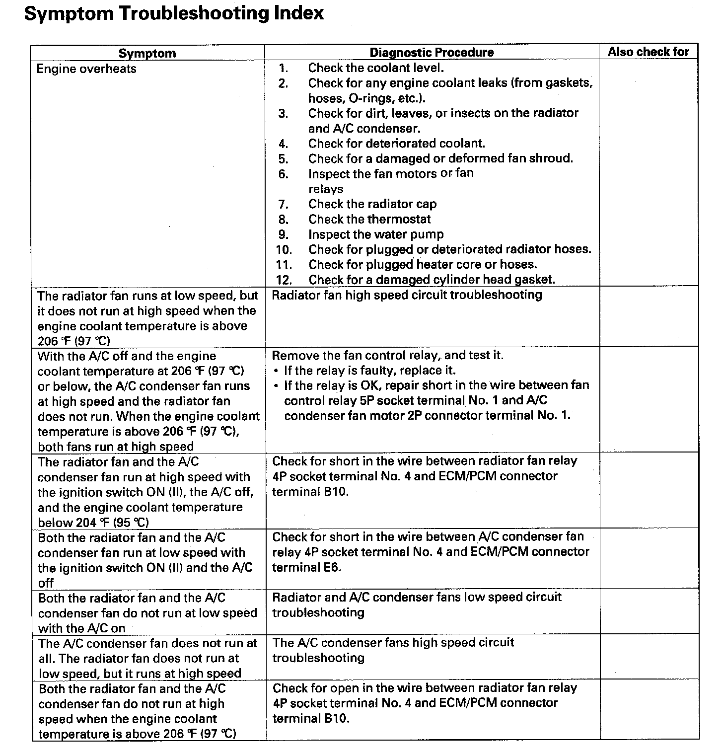 Symptom Troubleshooting Index: