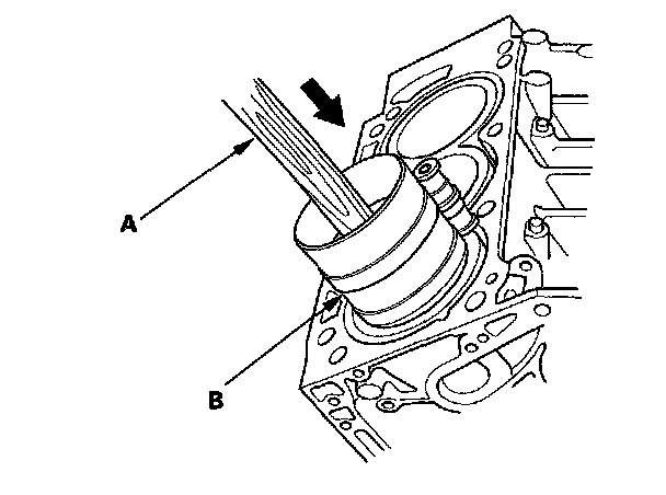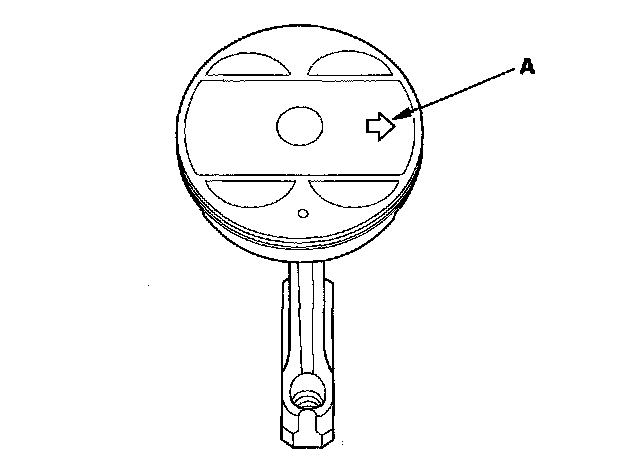 12. Position the piston/connecting rod assembly with the arrow (A) facing the timing belt side of the engine.