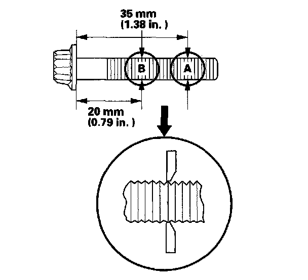 15. Measure the diameter of each connecting rod bolt at point A and point B.