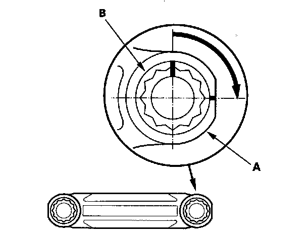 20. Mark the connecting rod (A) and bolt head (B) as shown.