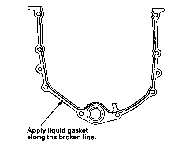 33. Apply liquid gasket, P/N 08717-0004, 08718-0001, 08718-0003, or 08718-0009, evenly to the engine block mating surface of the oil pump. Install the component within 5 minutes of applying the liquid gasket.