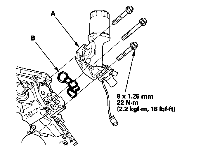 19. Apply new engine oil to the bolt threads and flanges. Torque the bolts (B) to 20 N.m (2.0 kgf-m, 15 lbf-ft).