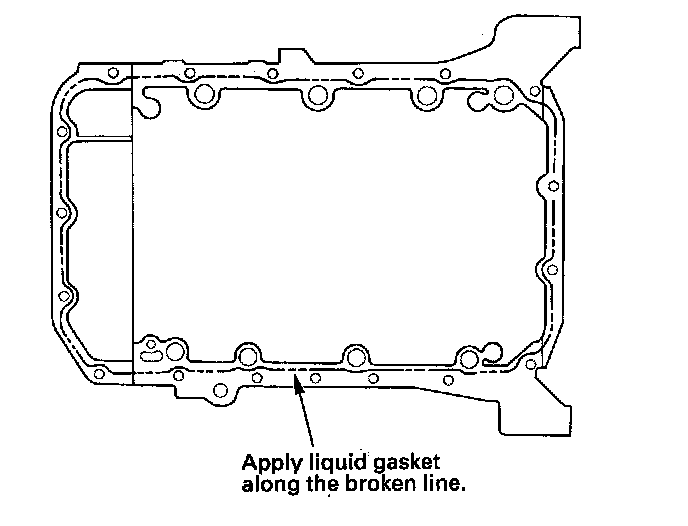 1. Remove all of the old liquid gasket from the oil pan mating surfaces, bolts, and bolt holes.