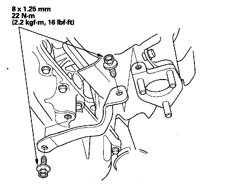 15. A/T model: Tighten the bolts securing the transmission lower mount.