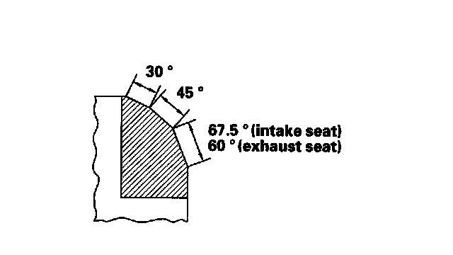 4. Bevel the upper edge of the seat with the 30° cutter and the lower edge of the seat with the 67.5° cutter (intake seat) or the 60°C cutter (exhaust seat). Check the width of the seat and adjust accordingly.