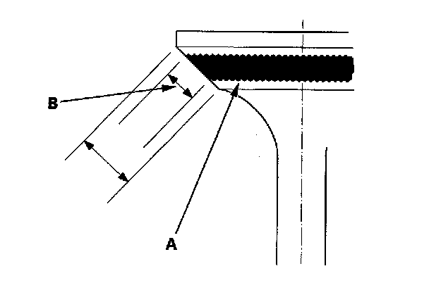 7. The actual valve seating surface (B), is shown by the blue compound, should be centered on the seat.