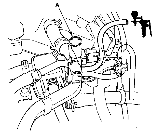 14. Connect a vacuum pump/gauge, 0 - 30 in.Hg, to the engine mount control solenoid valve (A) that is connected to the solenoid connector.