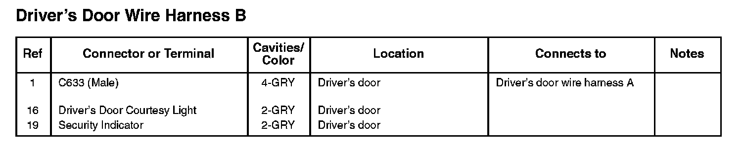 Driver's Door Wire Harness B: