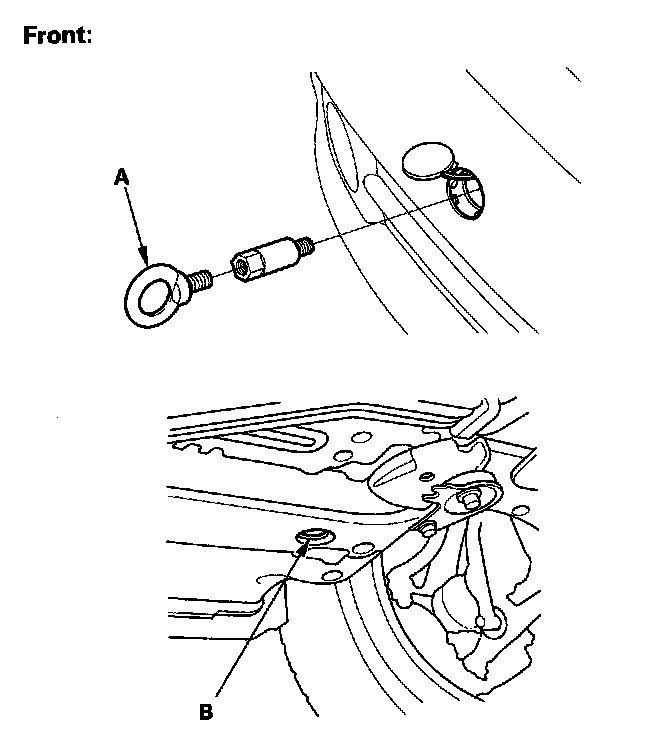 - The tow hook should not be used to tow the vehicle onto a flat bed. Do not use it as a tie down.