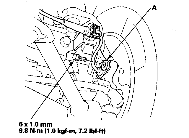 2. Remove the wheel sensor (A) from the knuckle. Do not disconnect the wheel sensor connector.