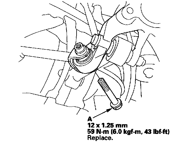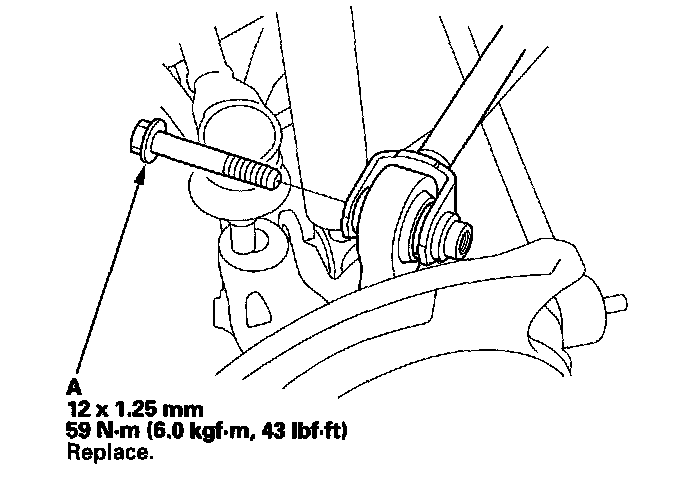 9. Remove the leading arm mounting bolt (A) from the knuckle.