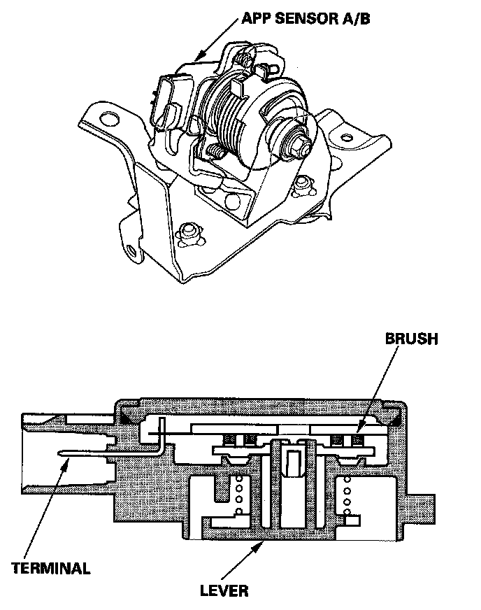 As the accelerator pedal position changes, the sensor varies the signal voltage to the ECM/PCM.
