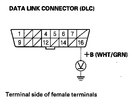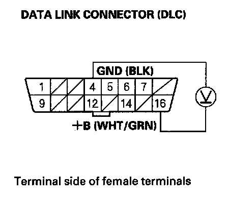 24. Measure voltage between DLC terminals No. 4 and No. 16.