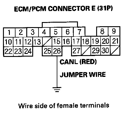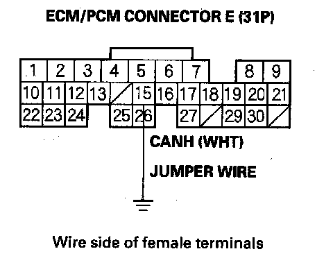 19. Remove the jumper wire from ECM/PCM connector E(31P).