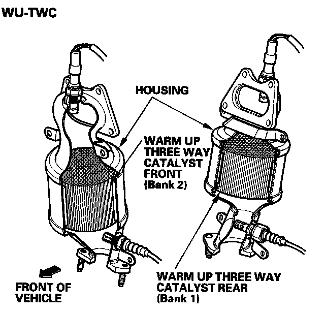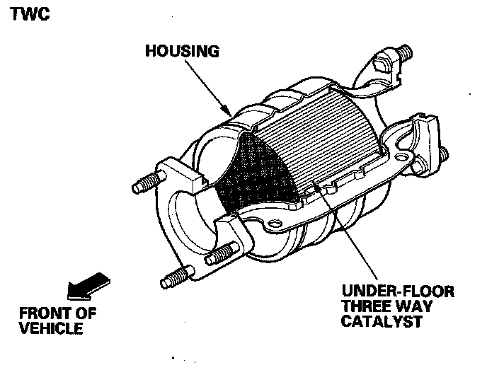 The WU-TWC/TWC converts hydrocarbons (HC), carbon monoxide (CO), and oxides of nitrogen (NO(x)) in the exhaust gas to carbon dioxide (CO(2)), nitrogen (N(2)), and water vapor.