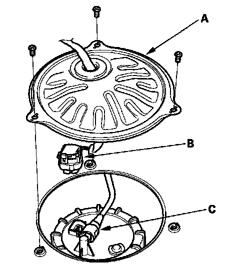 6. Disconnect the quick-connect fittings (C) from the fuel tank unit.