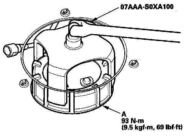 NOTE: To avoid a fuel leak, check the base gasket, visually or by hand, to make sure it is not pinched.