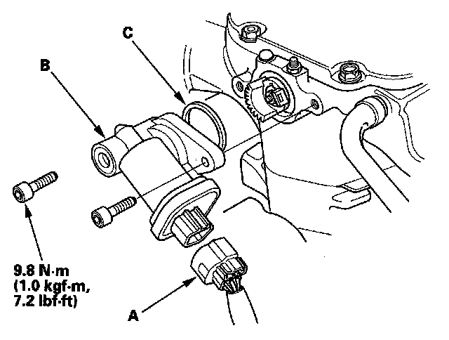 4. Install the parts in the reverse order of removal with a new O-ring (C).