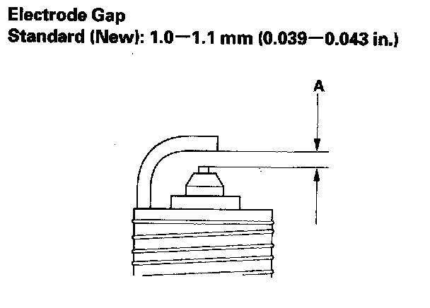 3. Do not adjust the gap (A) of iridium tip plugs, replace the spark plug if the gap is out of specification.