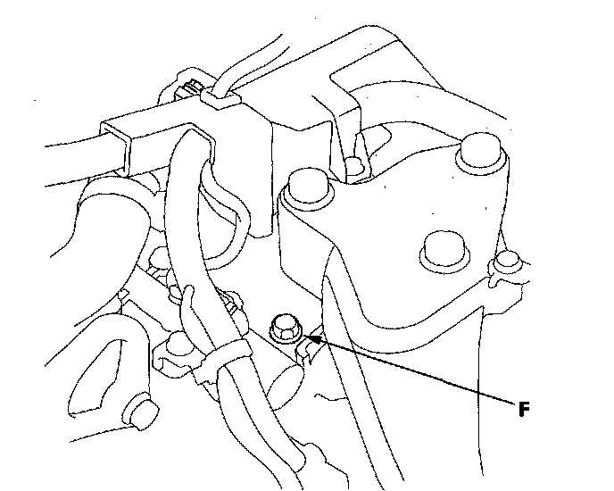 20. Remove the intake air duct and the air cleaner assembly, and connect the A/T oil pressure gauge to the 4th clutch pressure inspection port (F). Then temporarily install the air cleaner assembly and the intake air duct.
