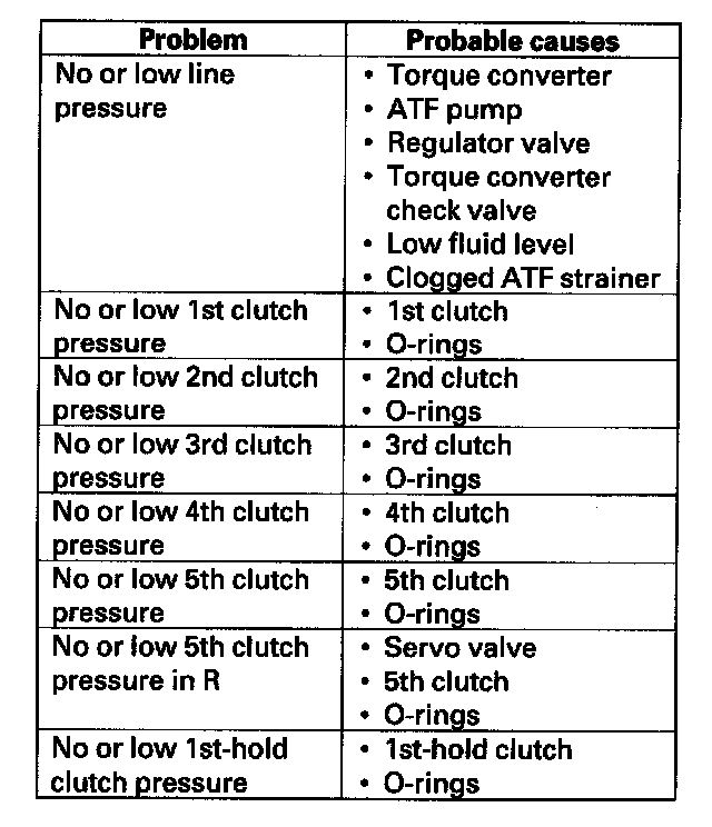 32. If any of the pressures are out of the service limit, the problems and probable causes are listed in the table.