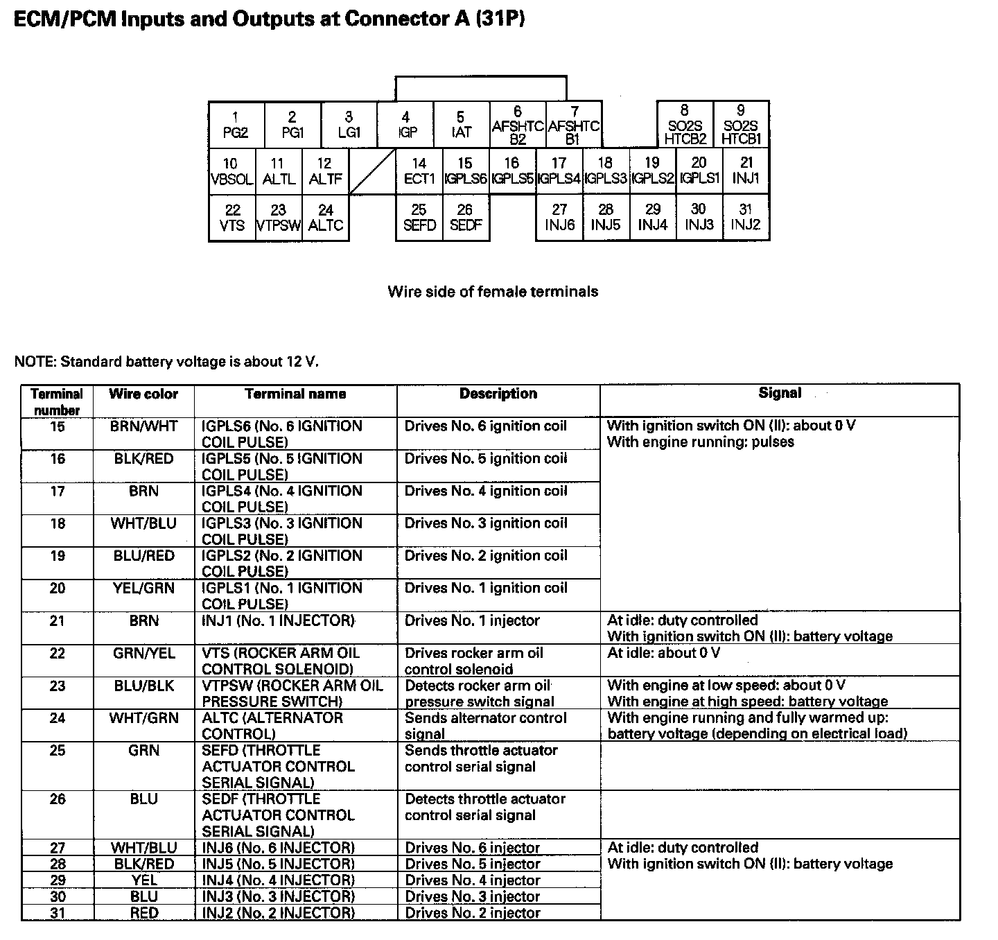 ECM/PCM Inputs And Outputs At Connector A (31P) Part 2: