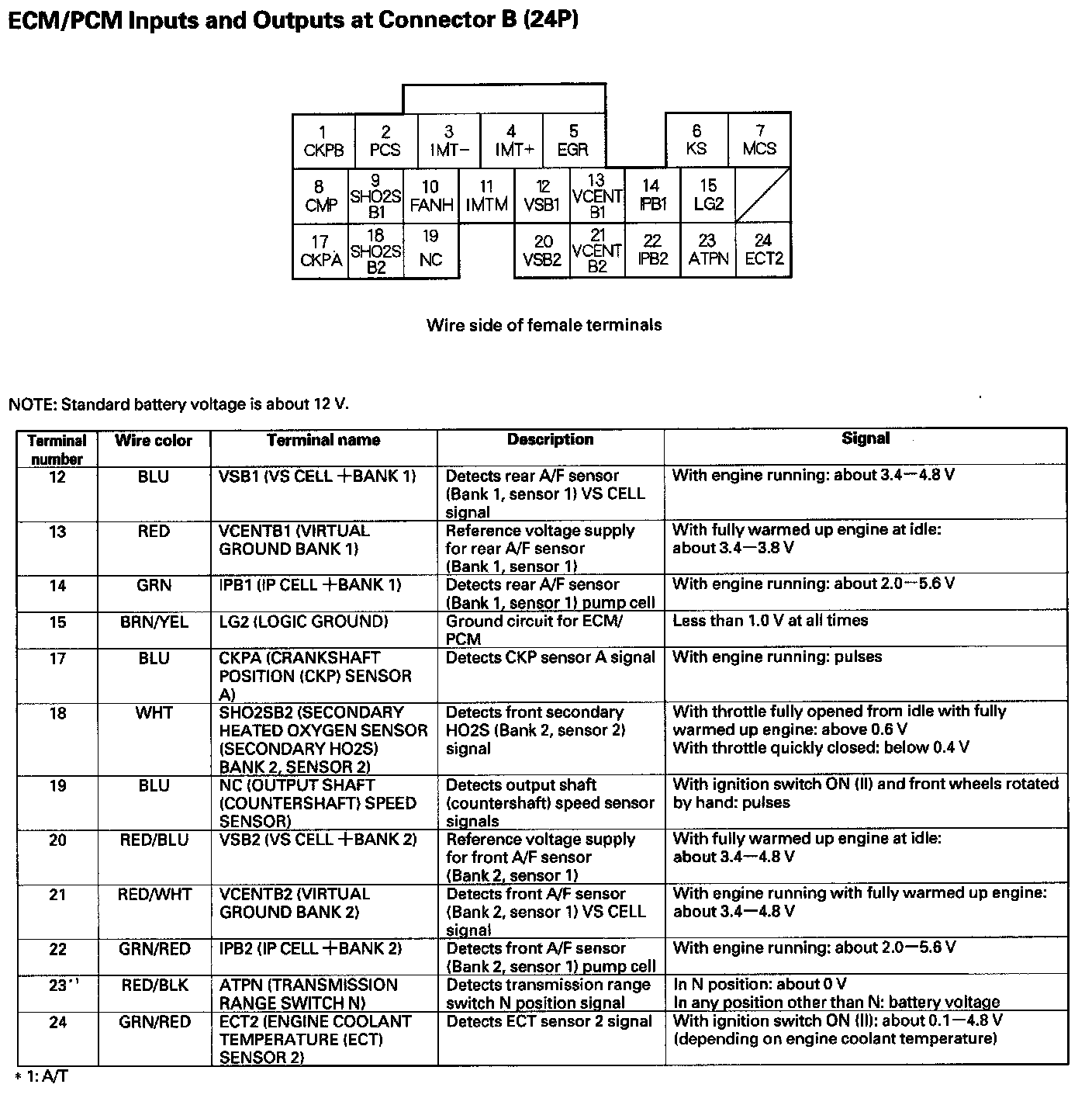 ECM/PCM Inputs And Outputs At Connector B (24P) Part 1: